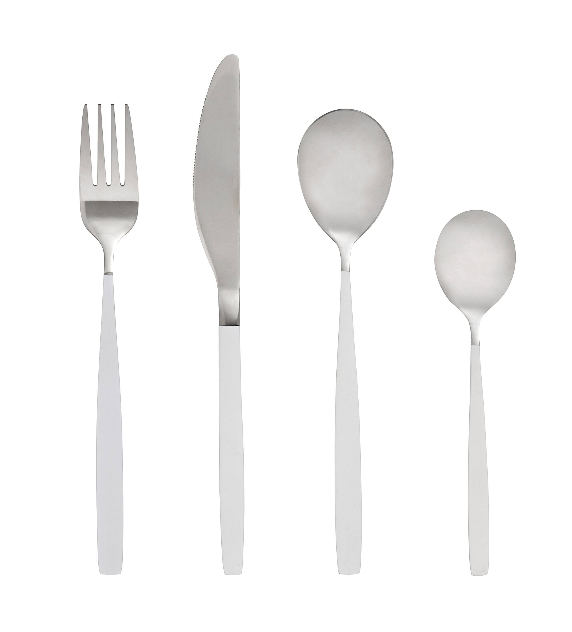 Een mooie bestek set van het Deense merk Nordal, in roestvrij staal met een witte coating. Voor dagelijks gebruik of voor de mooi gedekte tafel voor een feestje. Handwas wordt aangeraden.