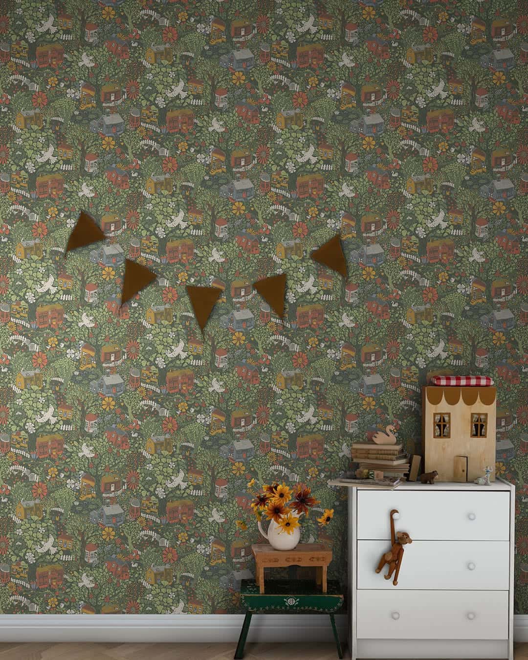 Dutch First Class Behang Resan is een dromerige ontdekkingsreis voor jonge avonturiers. Een verwonderlijke behangcollectie voor in de kinderkamer met ruimte-, bloemen-, voertuigen- en magische thema’s in zachte kleuren.