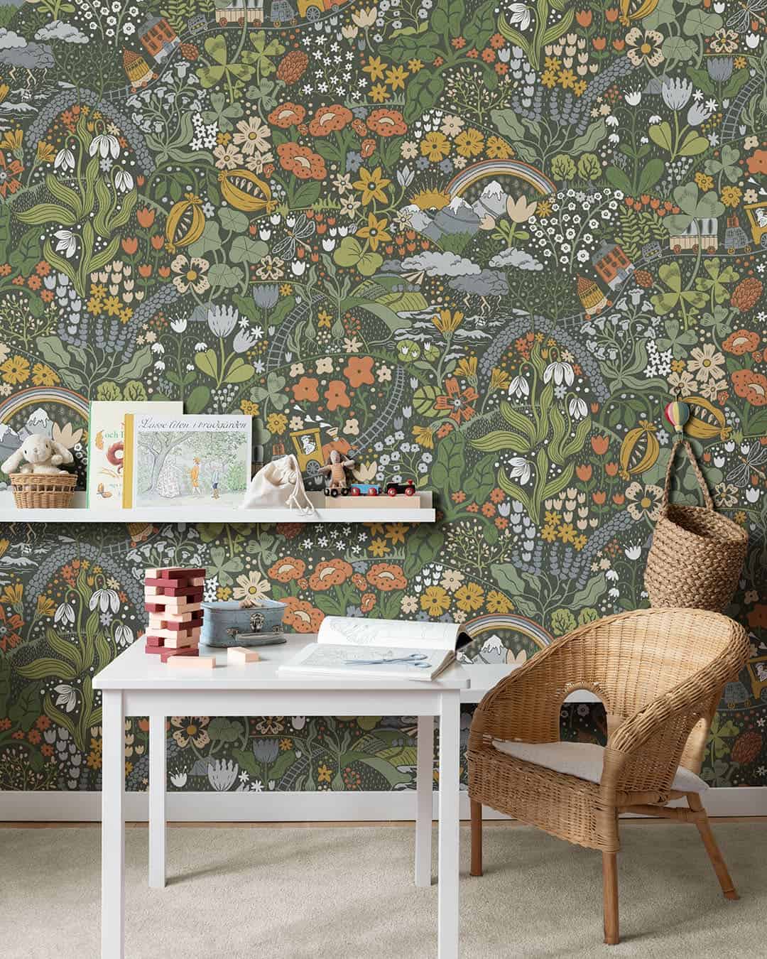 Dutch First Class Behang Resan is een dromerige ontdekkingsreis voor jonge avonturiers. Een verwonderlijke behangcollectie voor in de kinderkamer met ruimte-, bloemen-, voertuigen- en magische thema’s in zachte kleuren.