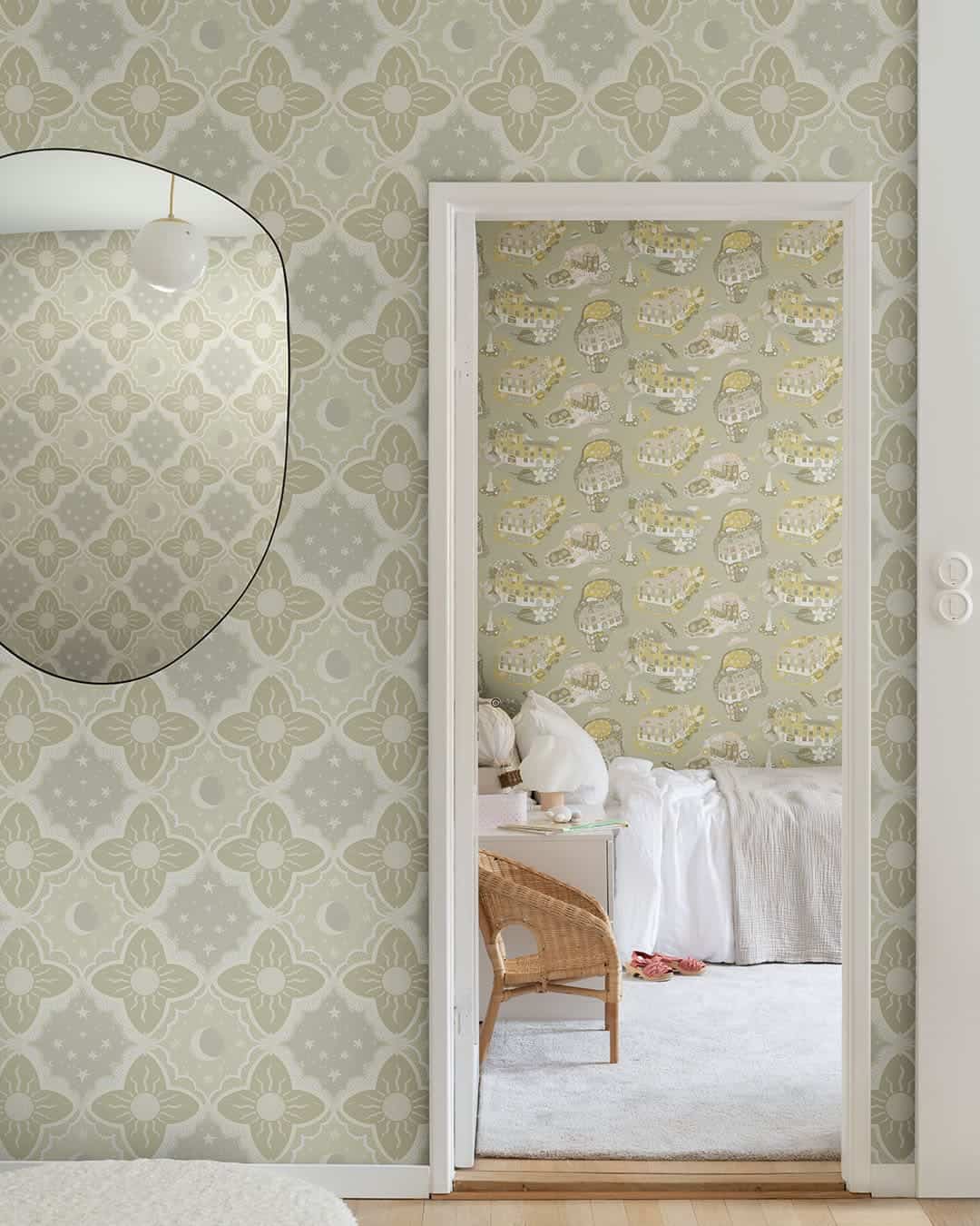 Dutch First Class Behang Resan is een dromerige ontdekkingsreis voor jonge avonturiers. Een verwonderlijke behangcollectie voor in de kinderkamer met ruimte-, bloemen-, voertuigen- en magische thema’s in zachte kleuren.