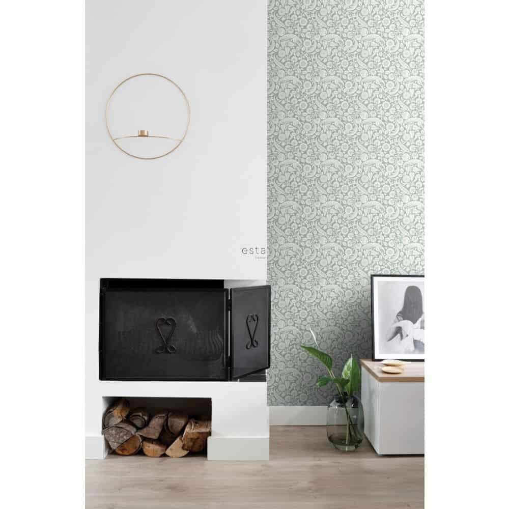 Esta Home Behang – Bloemmotief – Vergrijsd Groen – 139329
