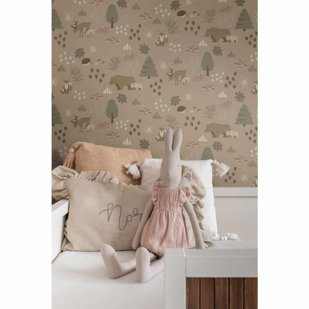 Van bloemen die tot leven komen tot speelse dieren die door het bos dartelen, elk design vertelt zijn eigen verhaal. Er schuilt een vleugje toverkracht in de prints die doen denken aan magische werelden vol dromerige details, terwijl de zachte tinten en vriendelijke vormen perfect passen bij kleuterbehang dat geborgenheid uitstraalt.