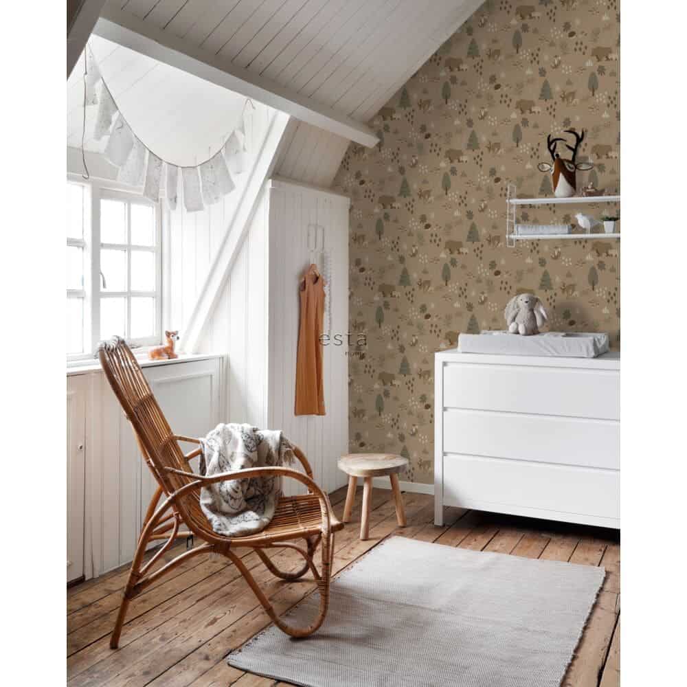 Esta Home Behang – Bos Met Bosdieren – Beige Bruin – 139410