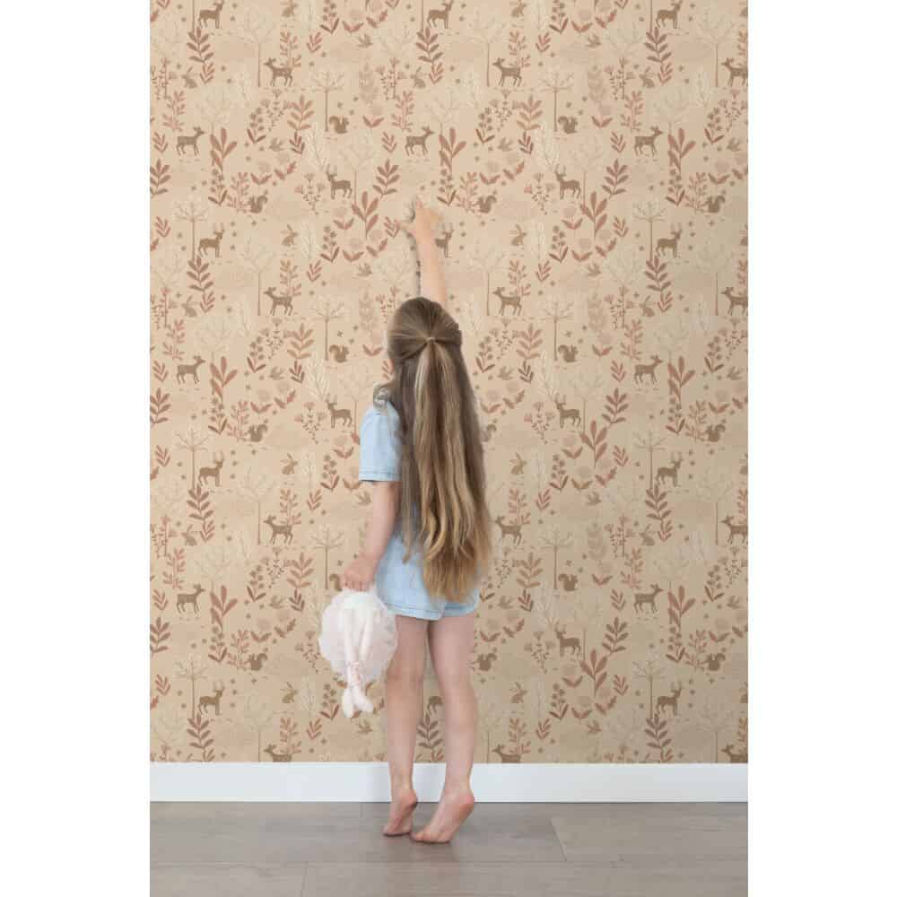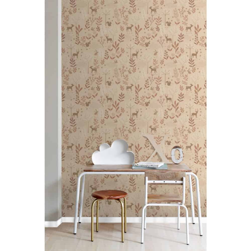 Esta Home Behang – Bos Met Bosdieren – Licht Terracotta – 131229