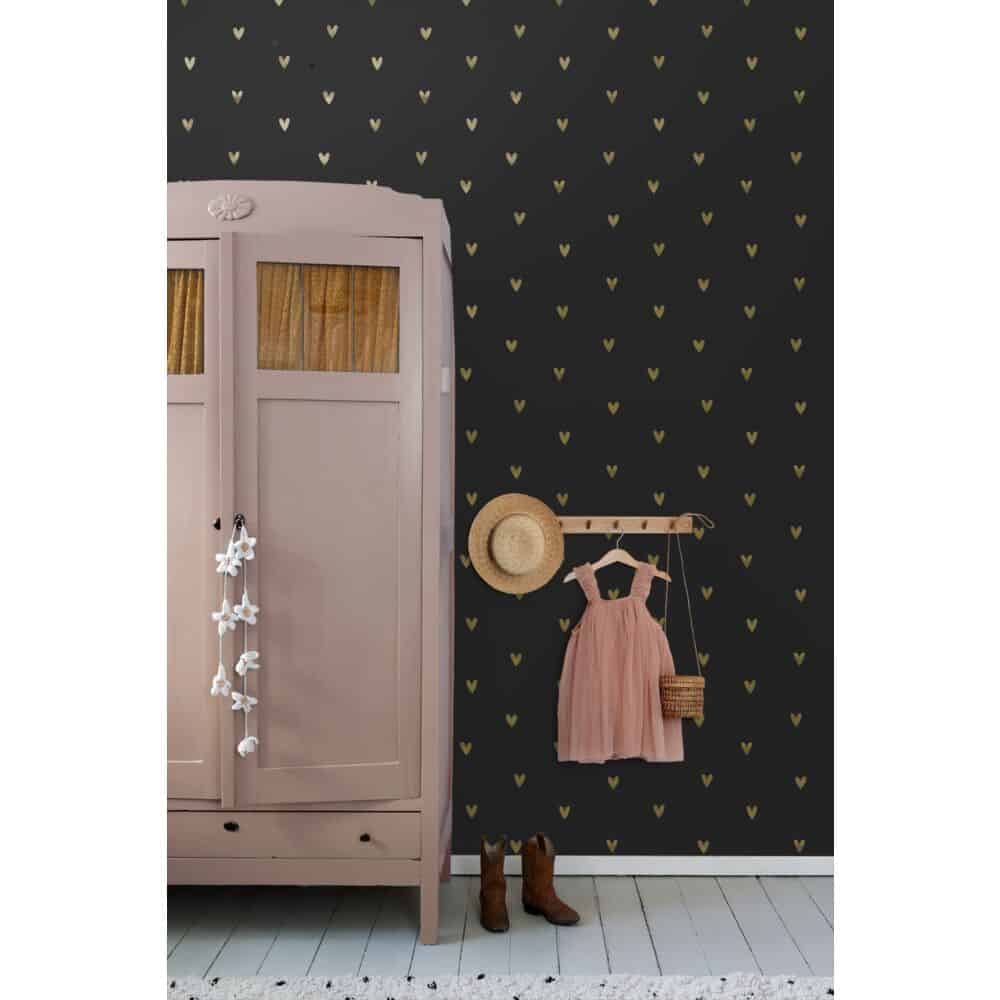 Esta Home Behang – Hartjes – Goud en Zwart – 139727