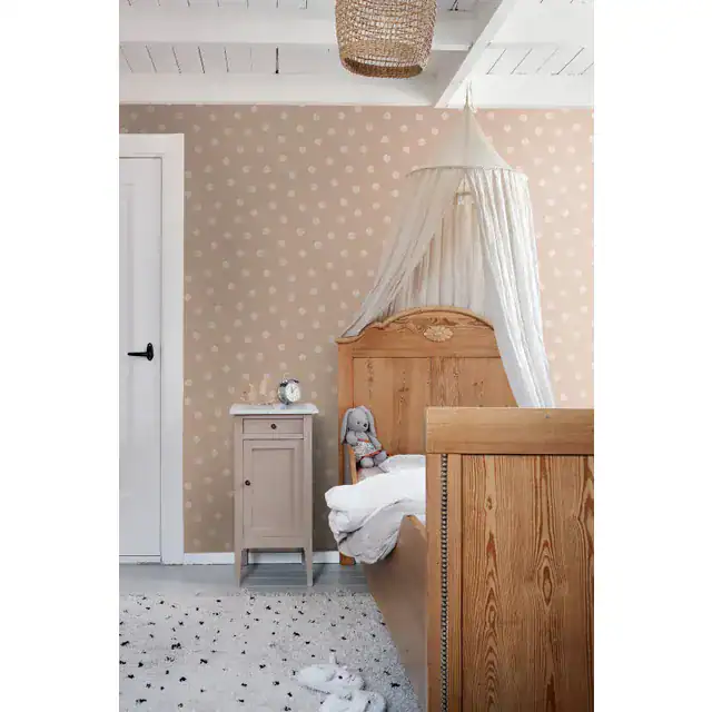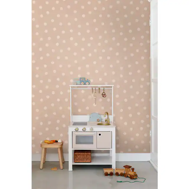 Met dit hippe meisjesbehang met kleine stippen, tover je elke kamer om tot een gezellige kinderkamer. Gecombineerd met lichte kleuren en natuurlijke materialen creëer je met dit Esta Home Behang een rustgevende en tegelijkertijd warme en gezellige sfeer.