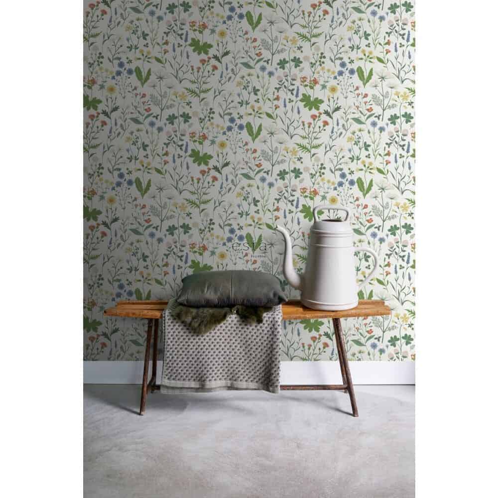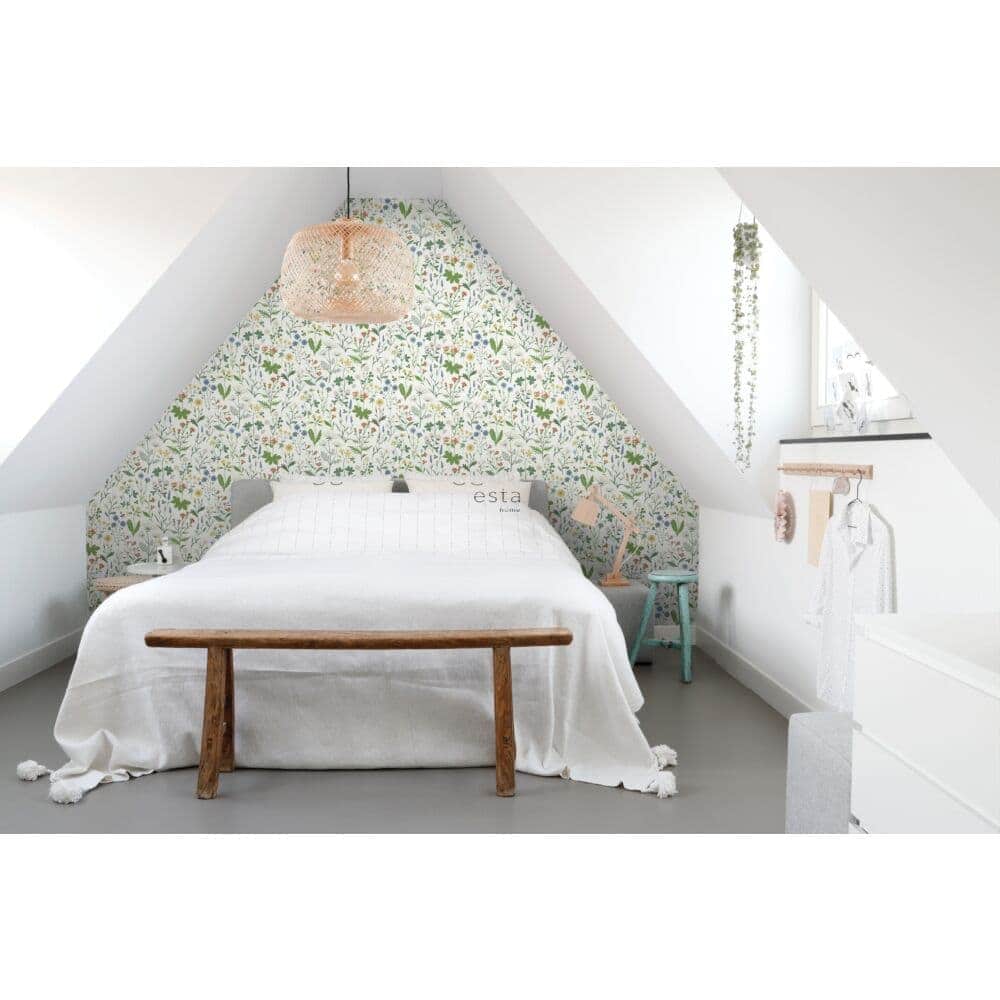 Met de Veldbloemen print van Esta Home Behang haal je de zachtheid van een bloeiend veld naar binnen. Fijne bloemen en subtiele takjes vormen samen een tijdloos dessin dat rust en sfeer brengt in elke ruimte. Een print die natuurlijk aanvoelt en tegelijk iets poëtisch heeft, als een stille ode aan de eenvoud van de natuur.