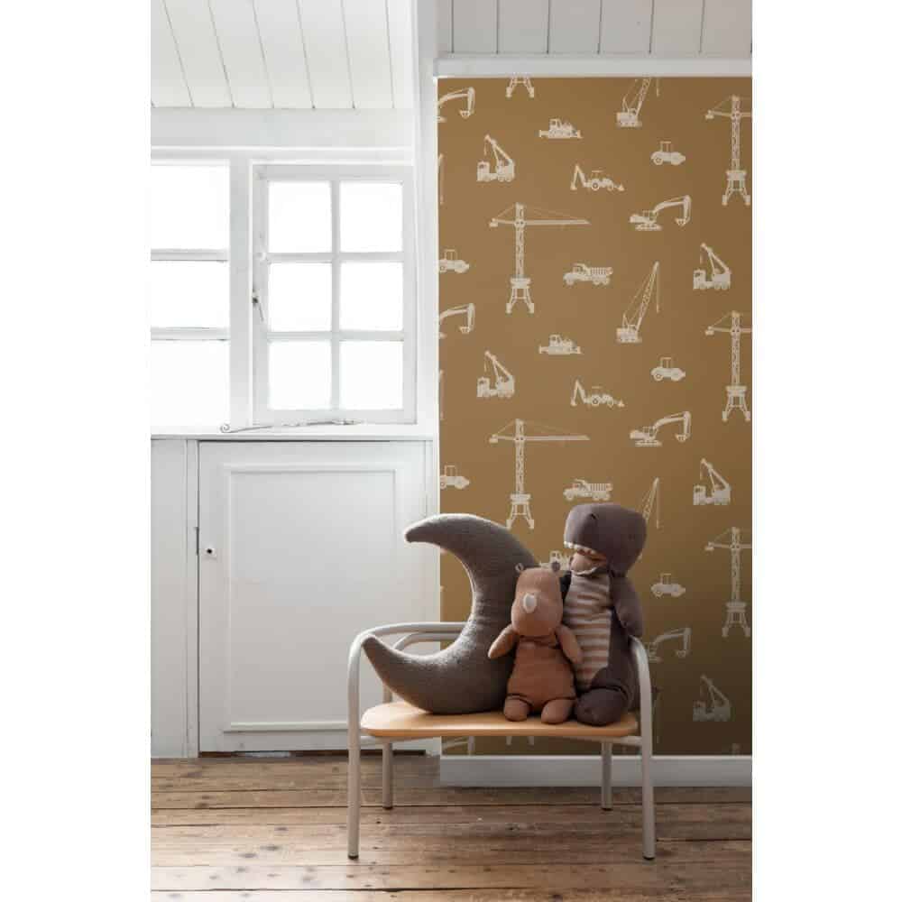 boerderijleven. Voor nieuwsgierige kleuters die houden van ontdekken, sluiten de zachte patronen mooi aan bij ons kleuterbehang. En voor kinderen met een hoofd vol fantasie en verhalen vind je in de meer dromerige ontwerpen een vleugje magie. Zelfs kleine verwijzingen naar avontuur en beweging sluiten aan bij ons assortiment rondom voertuigen.