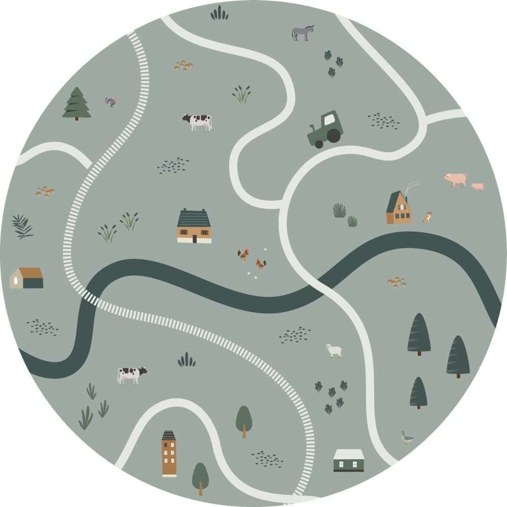 Esta Home Behangcirkel Ø70 cm – Tractoren en Boerderijdieren – Grijs Groen – 159068