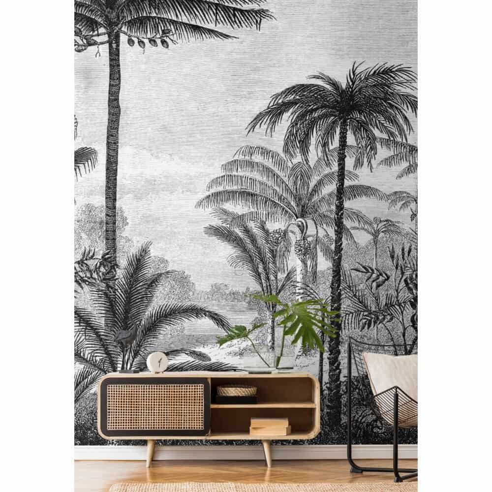 Esta Home Fotobehang – Tropisch Landschap Palmen – Zwart Wit – 158952