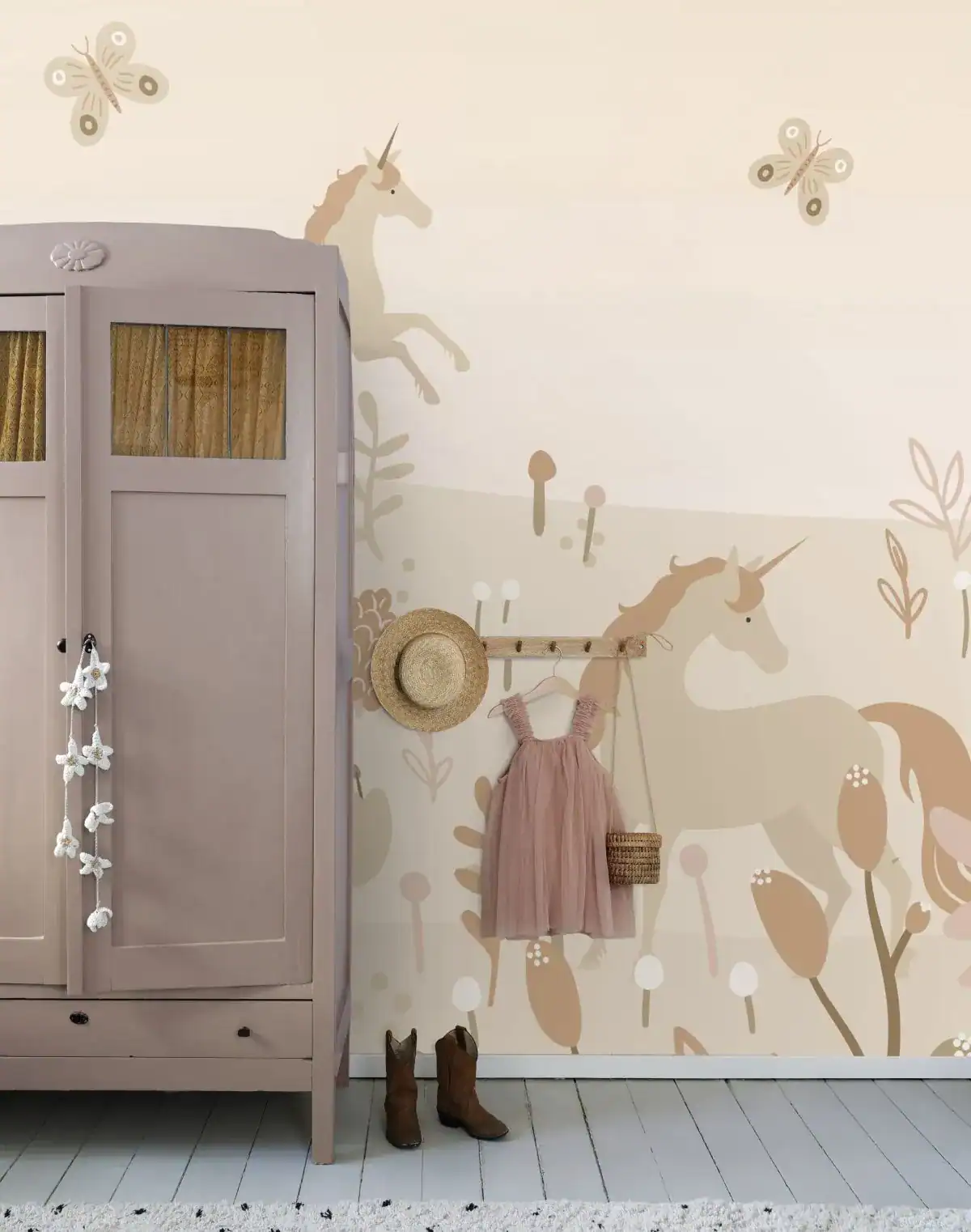 De collectie overstijgt bovendien de kinderkamer: met haar delicate bloemmotieven voelt ze zich ook thuis in interieurs met een romantische of natuurlijke uitstraling, zoals binnen de wereld van bloemen behang. Elk design ademt warmte, zachtheid en de tijdloze schoonheid van de natuur met een subtiel statement op elke muur.