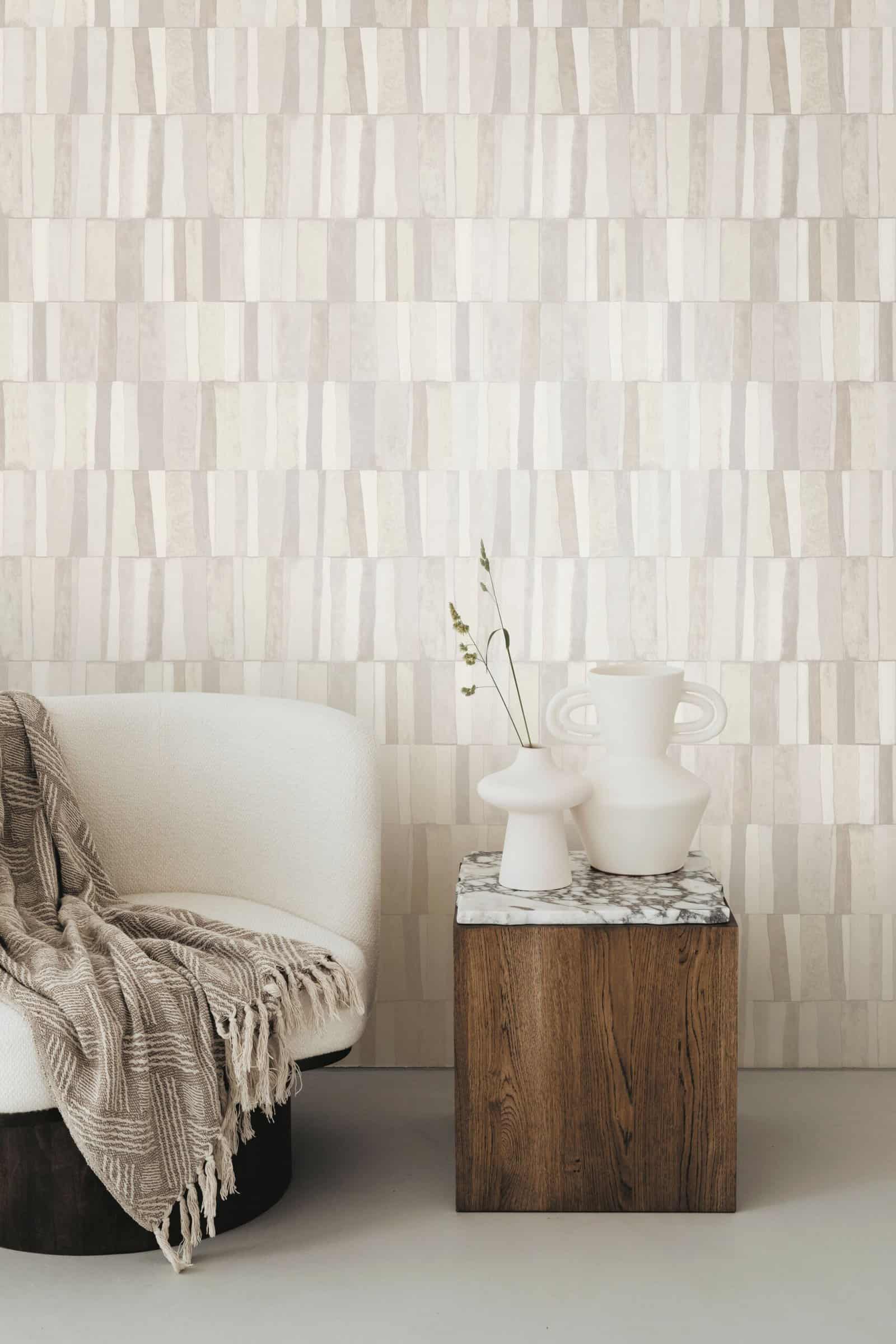 Subtiele texturen en geometrische patronen. Verkrijgbaar in een scala aan zachte tinten en diepe, luxe kleuren, afgestemd op een stijlvolle en serene sfeer.
