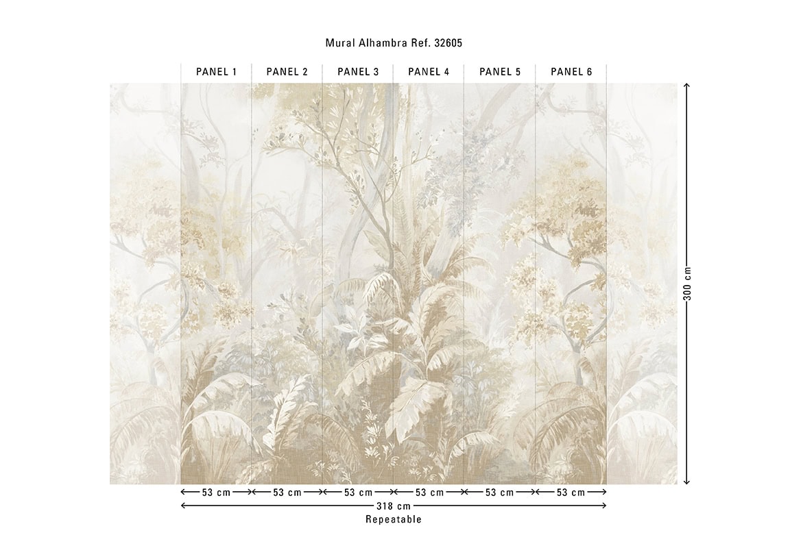 Afmetingen: Panorama van 318 cm (6 x 53 cm) x 300 cm = 9,54 m²