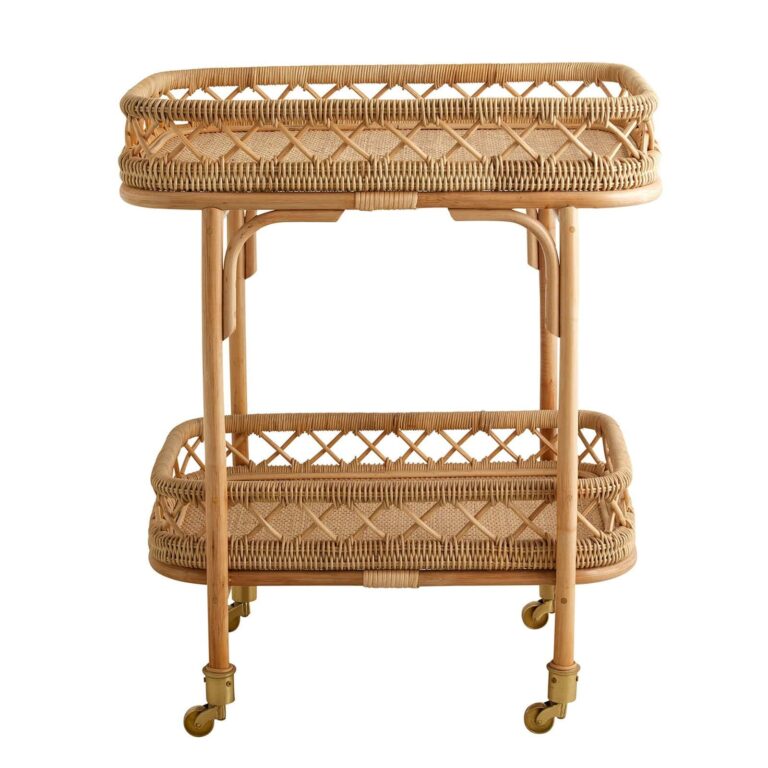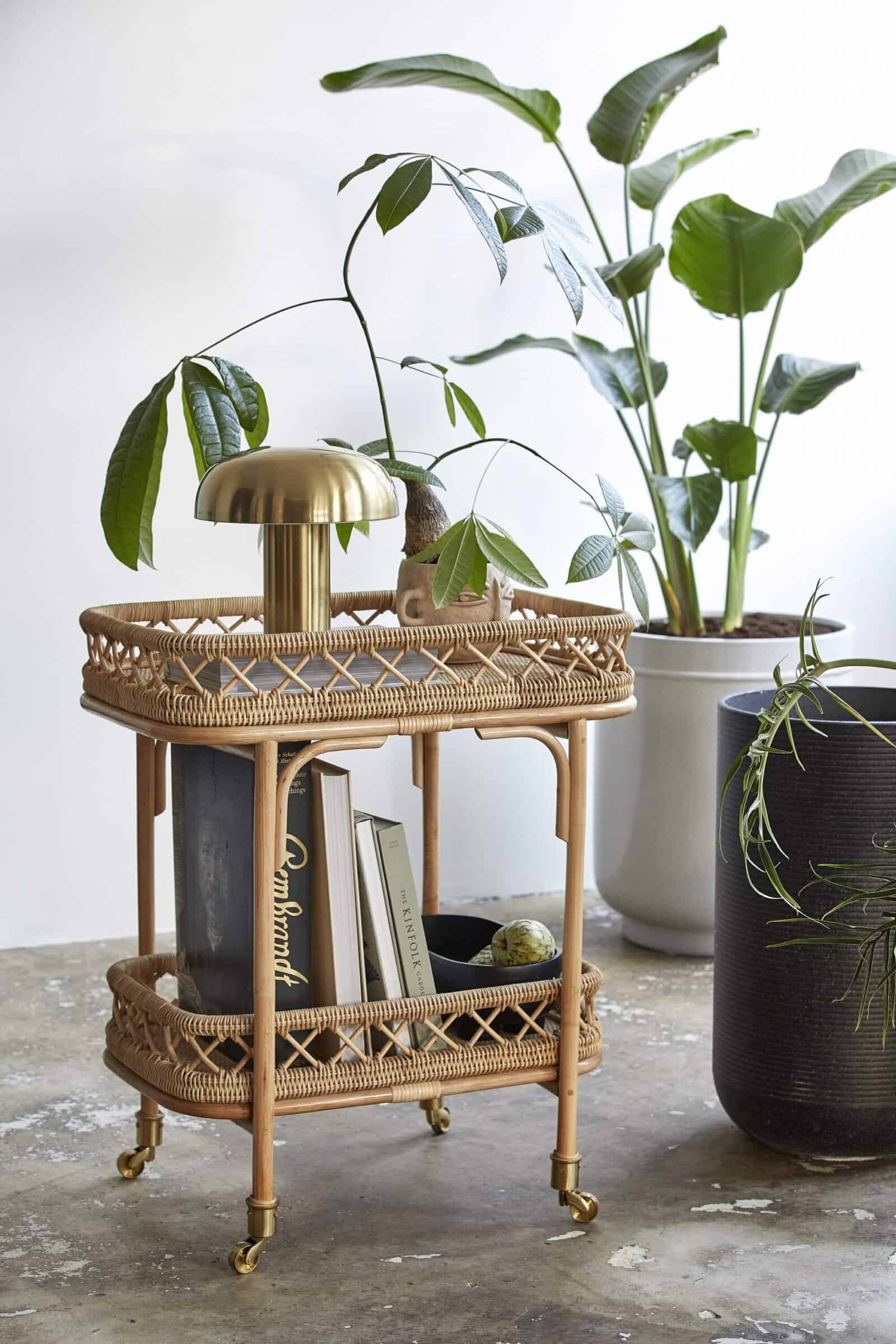 De Liri Trolley van het Deense merk Nordal is gemaakt van rotan. Vanwege het gebruik van natuurlijke materialen kan de trolley iets variëren van de foto in gewicht en kleur. Hoe gezellig staat deze trolley als mini cocktailbar! Het maximale gewicht op de planken is 30-35 kg.