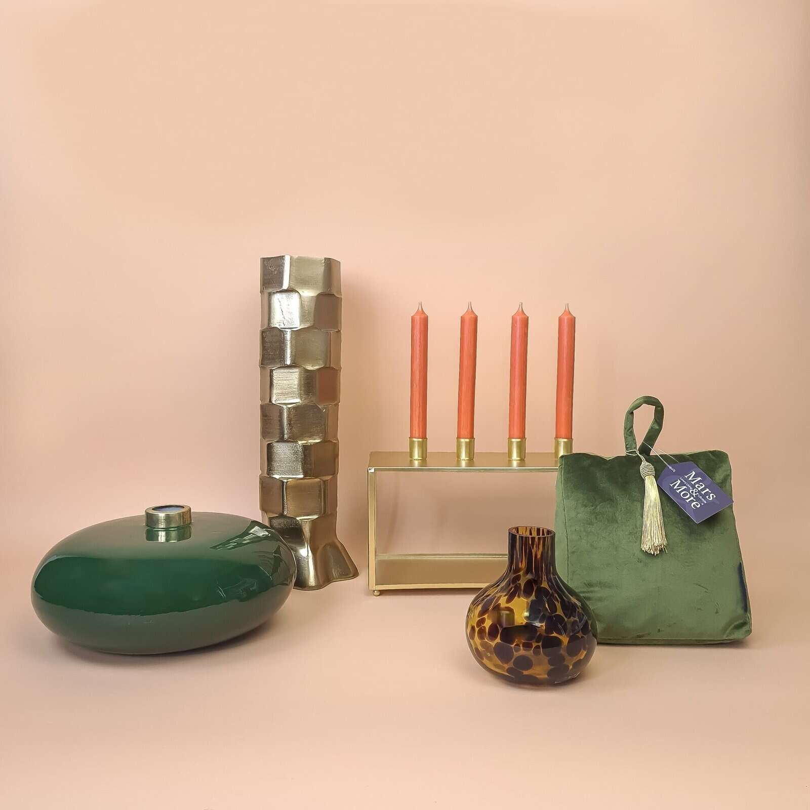 De groene Warly vaas van Light & Living is tof om te combineren met droogbloemen. Let op: de vaas is niet waterdicht. Wil je er wel verse bloemen in, stop deze dan in een plastic buisje verkrijgbaar bij de bloemist!